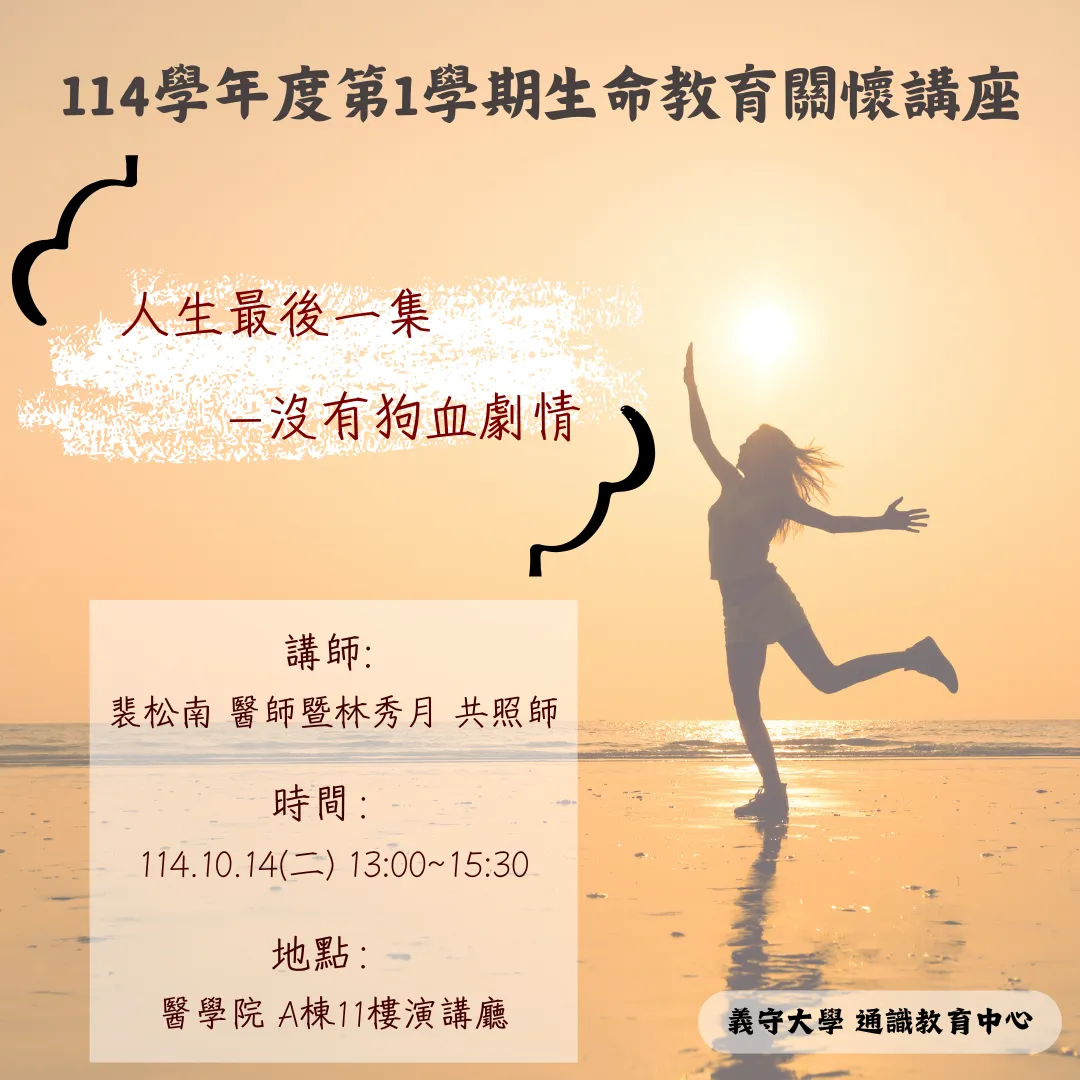 114-1 第二場生命教育關懷講座–『人生最後一集,沒有狗血劇情』
