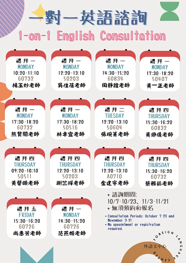 One on One Consultation ➢ October 7-November 21
