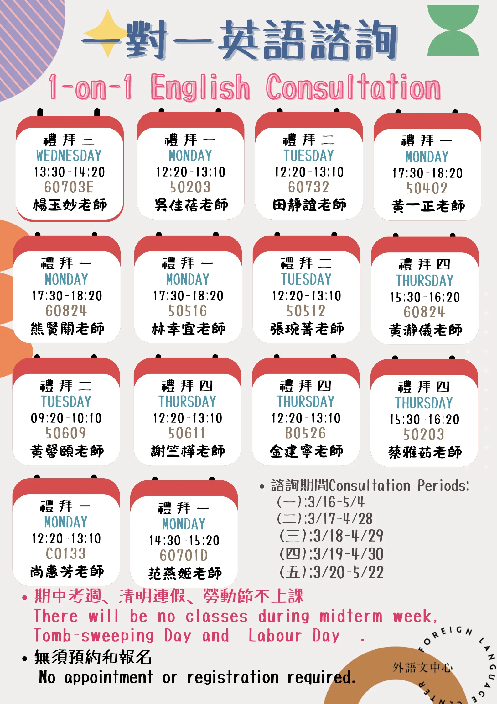 - • 測驗日 : 4/29 (三) 13:30-16:00